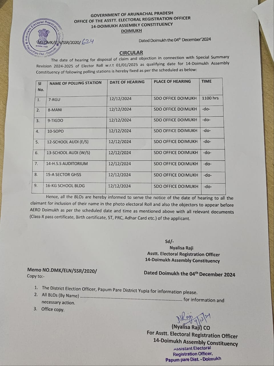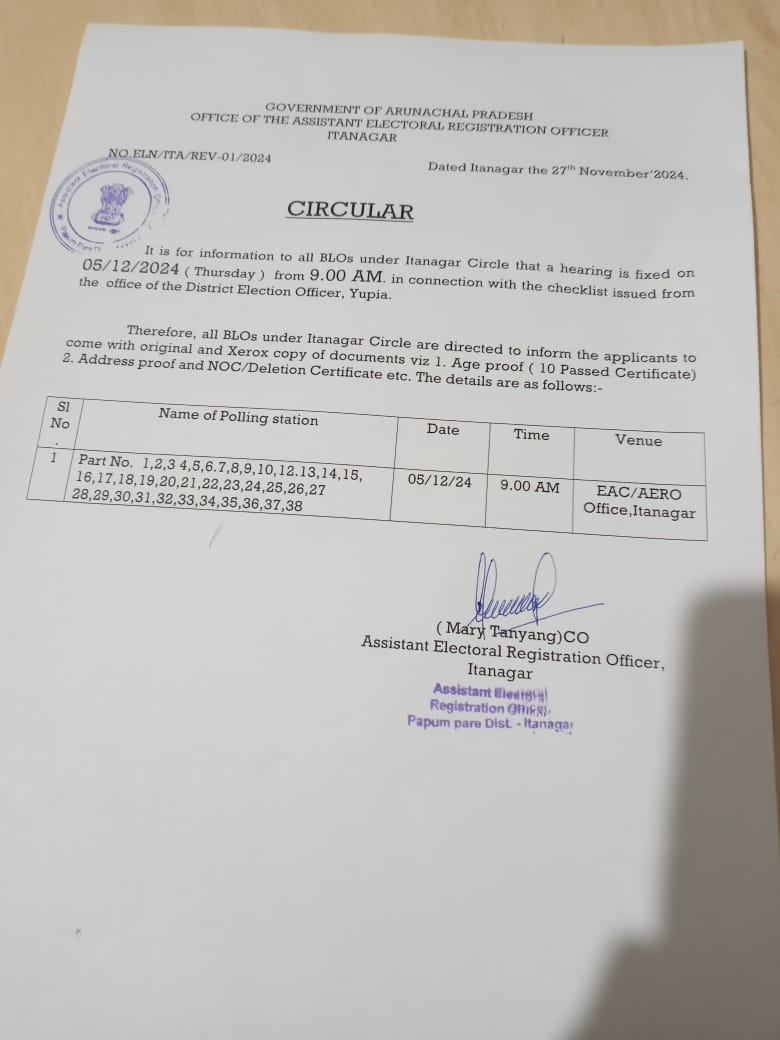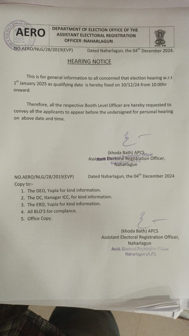 14. Special Summary Revision 2024-2025 of Elector Rolls w.r.t 01.01.2025 as qualifying date by AERO Itanagar.