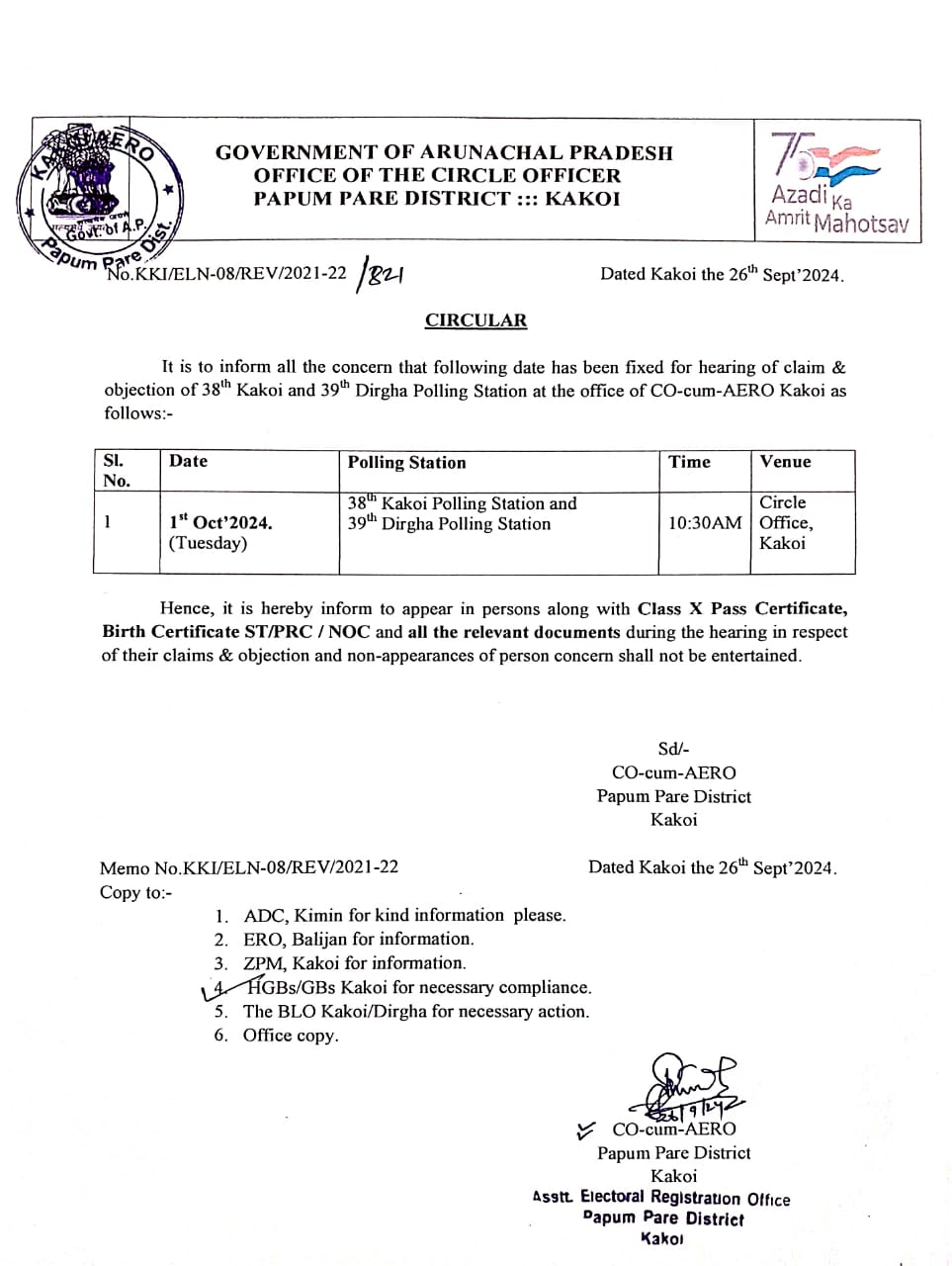 10. Hearing of claim & objection in respect of Sagalee and Leporiang circle.